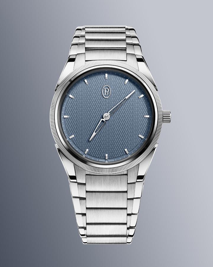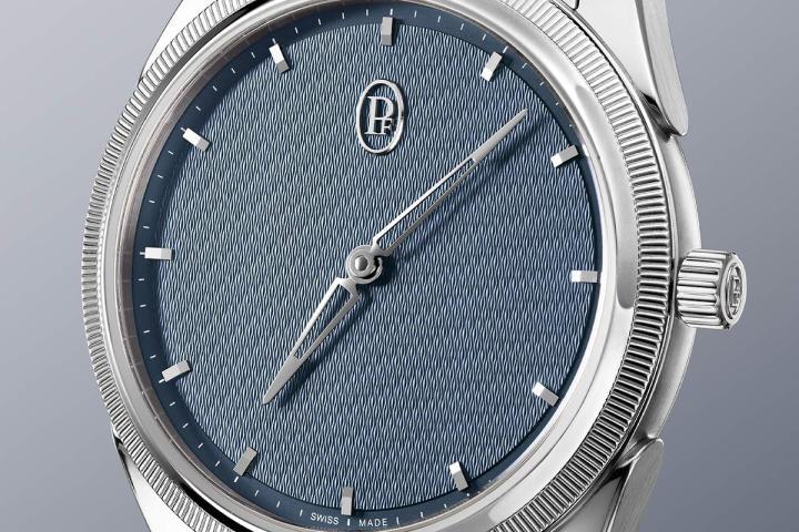 Tonda PF 36mm的石灰蓝色(Stone Blue)表盘,首次以时、分显示方式呈现,展现了帕玛强尼对细腻色调的极致追求。