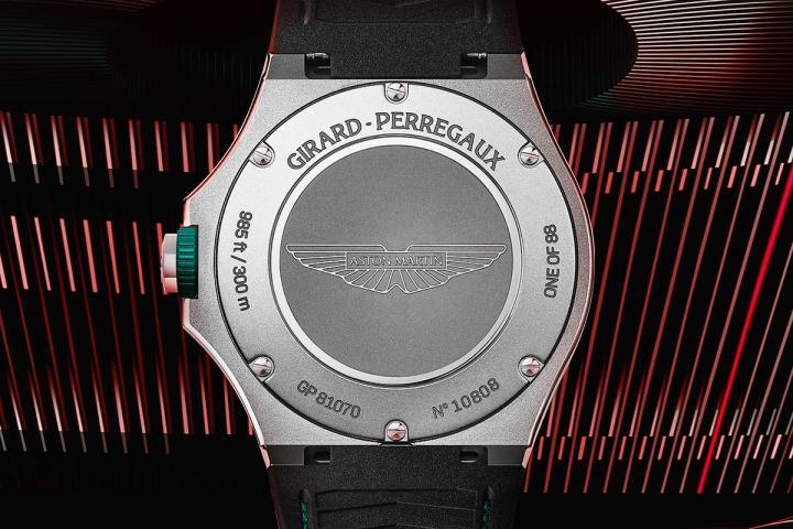 绝对桂冠腕表阿斯顿马丁F1®限量款采用44毫米五级钛金属表壳。五级钛金属以轻盈和韧性强的优势而深受芝柏和阿斯顿马丁青睐。此外,它还具有耐腐蚀、抗磁性和低致敏性的特点,这些特性都恰好符合制表所需。全新腕表的钛金属经过了喷砂处理,赋予其细腻质感与绝妙触感。
