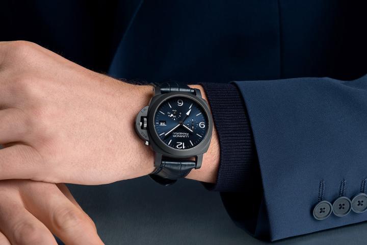 全新Luminor两地时间陶瓷腕表PAM01574采用44毫米黑色陶瓷表壳,结合抛光与磨砂的饰面工艺,烟熏色的蓝宝石透明水晶底盖以钛金属制成。防水深度达300米,透过将腕表置于高出保证防水性能25%的压力下,以确保其防水表现符合沛纳海的严苛高标。