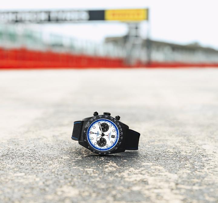 新款Black Bay Chrono “Carbon 25”腕表的诞生,正是对这段辉煌历史的致敬。它不仅承袭了帝舵在赛道上的悠久传统,更在材质与技术上实现了突破。全碳纤维表壳(含表耳盖)与钛金属计时按钮的创新组合,是工程学的结晶,也是美学的升华。碳纤维的轻盈,赋予了腕表灵动的气质;钛金属的坚韧,则彰显了无畏挑战的精神。这种先锋组合,恰如赛车手在赛道上,以轻巧的车身承载著钢铁般的意志。这不仅仅是重量的减轻,更是速度的提升。因为在赛车世界里,轻一分便快一秒,这种对细节的极致追求,在腕表的设计中体现得淋漓尽致。测速计外圈采用碳纤维制成,甚至连合成表带的固定式表耳盖,也选用了这种轻质材料。锱铢必较,分毫必争,这份执着,是所有追求卓越者共有的品质。