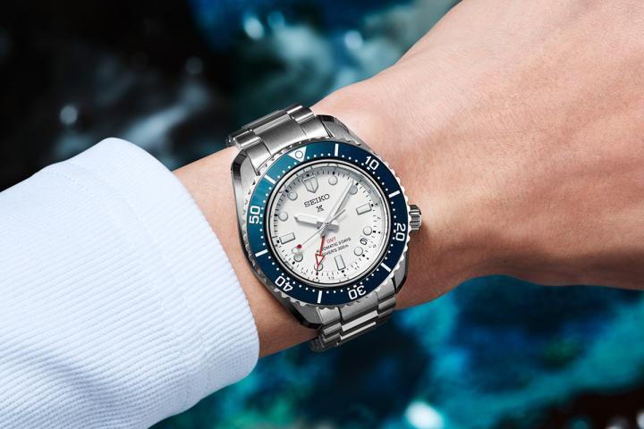 表款搭载6R54机芯,提供长达72小时的动力储存,并具备可显示两地时区的GMT功能,透过GMT指针和表圈上的24小时刻度,佩戴者可以轻松掌握第二时区的时间,面盘上还可看到“3 days”以及“DIVER’S 300 m”字样,呼应了表款所配备的出色性能。
