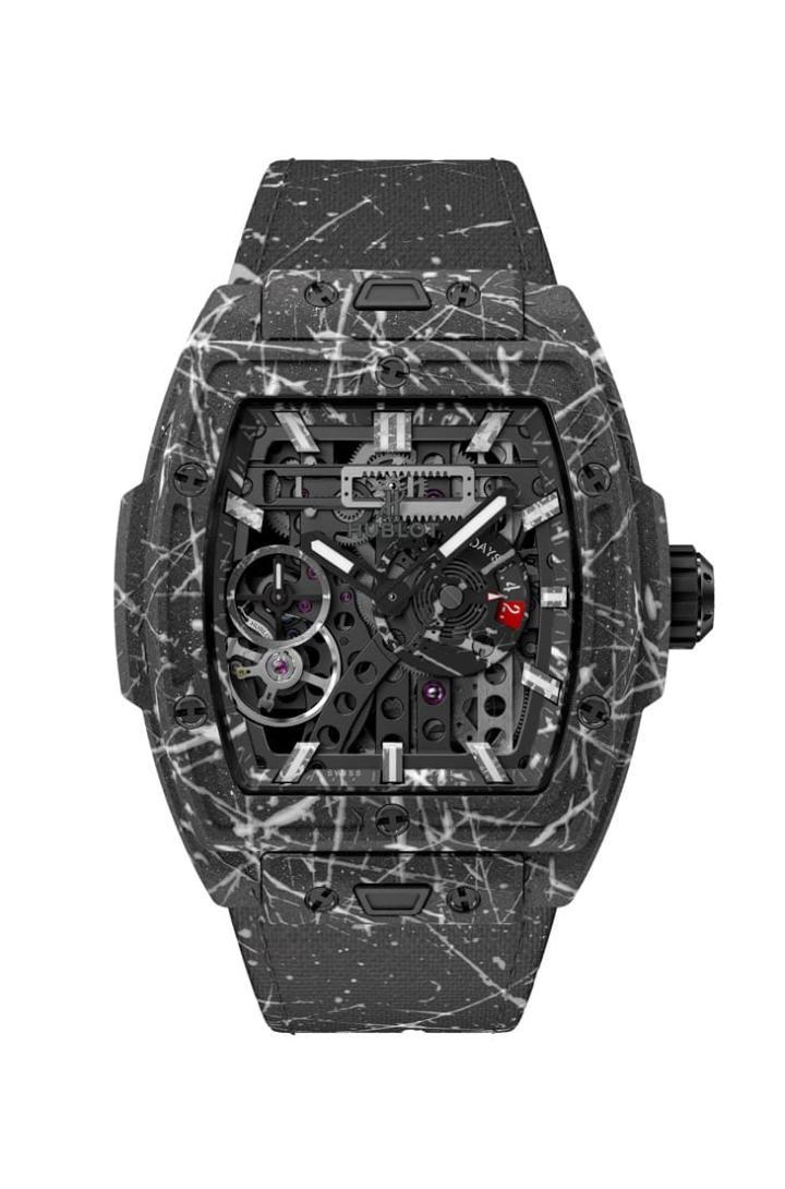 混凝土复合材质饰以街头艺术绘画装饰/HUB1233手动上链机芯/时、分、小秒显示/动力储存显示/蓝宝石水晶镜面、透明底盖/防水100米/表径45mm/限量30只/参考价:¥ 396,000