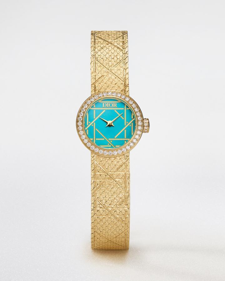 最令人惊艳的,是两款限量珍藏版作品,表径同样囊括19mm与25mm两种尺寸。18K金光泽与亮丽绿松石漆面交织出 Dior 的创意巧思,完美结合传统与创新、美感与大胆风格,两种尺寸表款各限量20只,堪称 Dior 精神的象征之作。