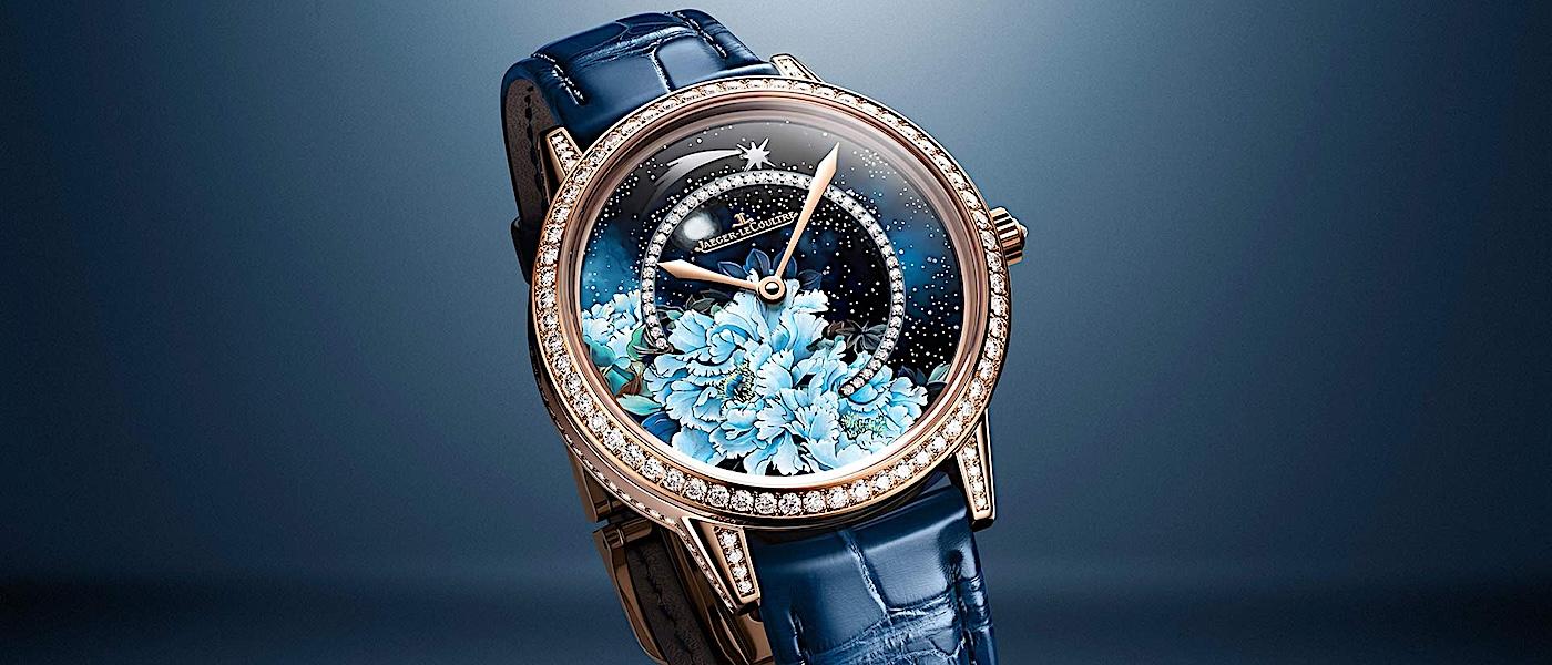 Rendez-Vous Shooting Star约会系列流星腕表将大工坊的精湛技艺与匠心艺术结合,重新演绎浩瀚夜空的神奇景象。由近500颗星星构成的璀璨夜空,并非绘制而成,而是采用转印工艺精准镶贴于牡丹表款的表盘上,体现积家在每件作品中对微小细节一丝不苟的态度。选择牡丹为主题的原因,是因为牡丹花繁茂又精致,尽显女性的柔美气质,而且在许多文化中,牡丹亦是财富、繁荣和智慧的象征,是升华此浪漫优美制表复杂功能的不二之选。
