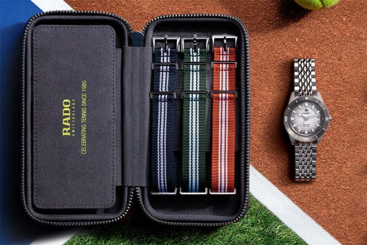 该腕表搭载Rado R763自动上链机芯,动力储存达80小时,并采用Nivachron™防磁游丝与五方位调校测试,确保在极端环境下仍保持运作精准,对应网球选手在场上的专注与耐力。表背可见镌刻“LIMITED EDITION, ONE OUT OF 1985”字样,搭配草地、红土与硬地压印纹理,再现网坛历史地景,亦标志此表身份的唯一与荣耀。此表不仅是一项技术作品,更是一份荣誉的延续。Rado与国际顶尖赛事如华盛顿公开赛、瑞士格施塔德赛、维也纳银行公开赛等携手多年,Rado Captain Cook库克船长系列X网球40周年限量套组,是献给当代球迷与时尚爱好者的传世之作,融合运动精神与制表美学,成为腕间最动人的节奏声响。