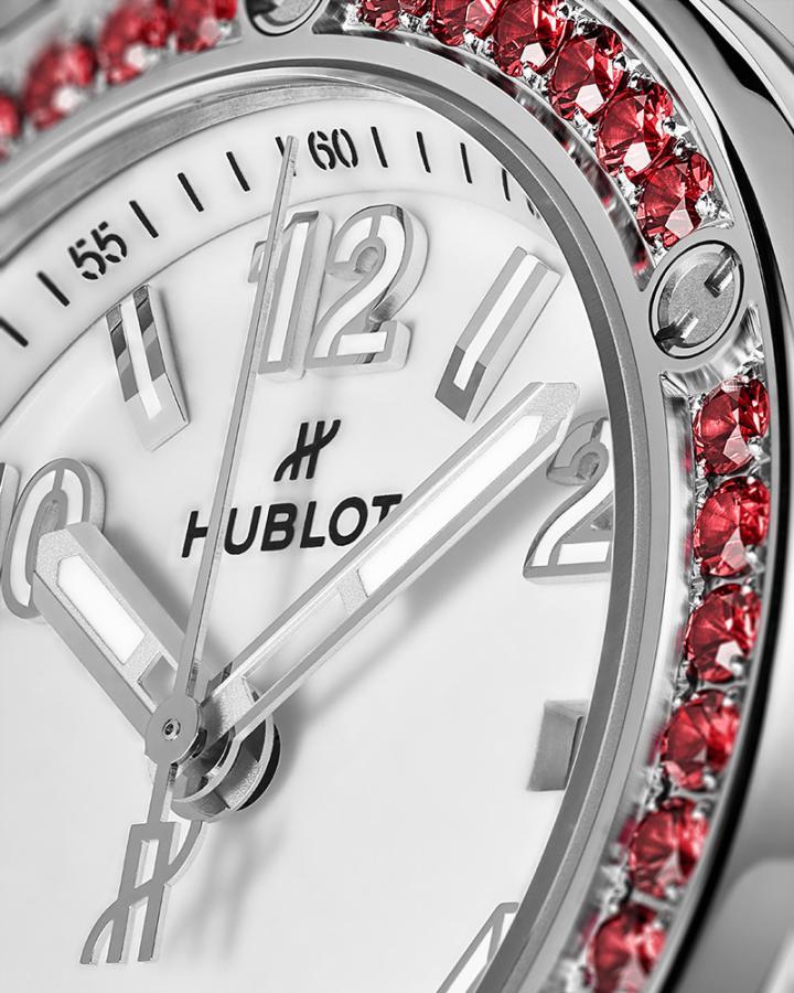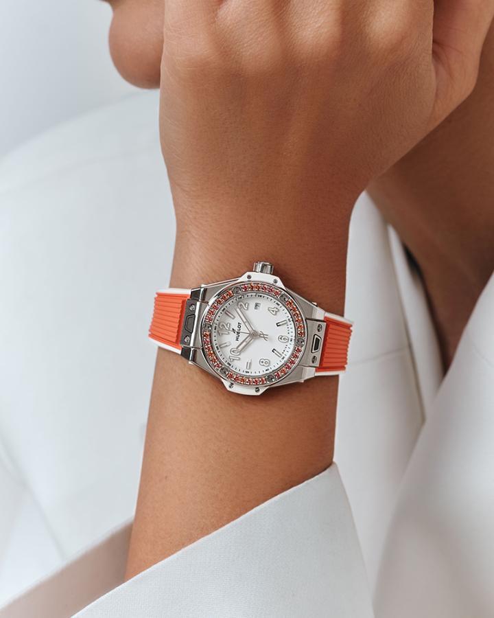 无论是简约的白T牛仔裤、度假感的长洋装,还是剪裁俐落的西装套装,Big Bang One Click Joyful悦彩特调系列都能轻松融入你的日常造型。搭载女性友好的专利One Click单键快拆表带装置,只需自行按压上下两端的梯形按键,即可轻松更换表带,结合运动风格的机能结构与珠宝表的细腻光彩,这款腕表不只是夏日穿搭灵感的延伸,更是一种生活态度:在甜美与干练之间,从容转换你的风格节奏。