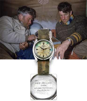 这个系列最早的一款是Rolex劳力士,“Oyster Perpetual蚝式恒动,天文台官方认证”,1953年生产参考号6084。这只表由Rolex Bosecks在印度加尔各答交给Sir Edmund Hillary埃德蒙•希拉里爵士,陪伴他成功登上世界之巅珠穆朗玛峰。1955-1958期间他又佩戴此表横贯南极探险 – 这是自Scott 1912年以来第一个陆路穿越南极洲和第一次远征 - 因此具有巨大的历史意义。表背刻有“Sir E. Hillary”。估计:10’000 - 20’000瑞士法郎。