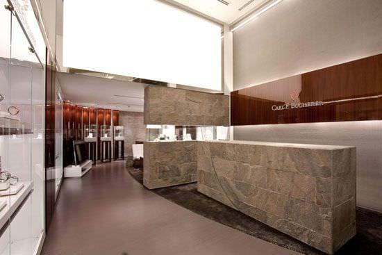此次新开幕的精品店总占地约为50平方米,将被划分为五个不同的区域。且提供了一种可以畅通无阻的去浏览店内的方式,顾客们可以通过一个较高的欢迎展示窗口来欣赏店中的钟表。这是在灯光的照耀下灿烂的牛奶玻璃墙的背后,而间接的,弥漫萦绕的光线将顾客们邀请到高雅的手表面前。当顾客们进入精品店时,豪华的门把手将构成首先吸引人们眼光的物件,其典型的设计方式,位于外围的振荡装置是Carl F. Bucherer 宝齐莱在制造机芯的重量级技术,这是仅在Ste-Croix的研究所中在能被组装使用的。