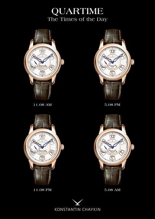 著名俄罗斯制表商、独立钟表创作者协会(AHCI)成员Konstantin Chaykin推出Konstantin Chaykin Quartime腕表,提醒我们将一天定义为四个周期——因此取名“Quartime”,每天会变得更加愉悦。