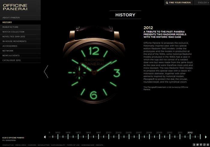 www.panerai.com 网站内容丰富,致力于介绍该品牌以及产品。并将不断改进更新网站,推出新版块,比如专门介绍Panerai沛纳海历史系列腕表,因为收藏家们狂热地喜欢它。在网站推出的同时还进行了一系列的活动,目的就在于提高宣传力度,在网络平台为品牌的众多忠实网友提供了一系列产品参与活动。