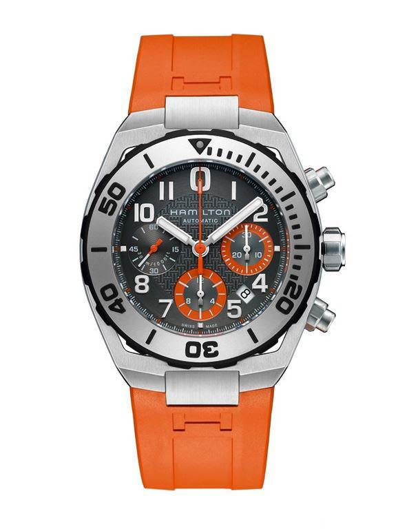Hamilton矢志追求最优越性能,借着最先进的质料及制表技术,确保即使在海洋最深处腕表也稳定可靠。品牌一直是全球多国精锐海军的时计供应商,手表内外也尽展翘楚风范。独有的H-31自动机芯准确度和稳定性能无出其右,还具备60小时动力储存。它的造型精巧细致,表面饰以H字图案,特大0字方便潜水时观看,运动型销扣亦塑成H字。表面备有黑色及金属灰色可供选择,配衬黑色或橙色橡胶表带,形象潇洒醒目。