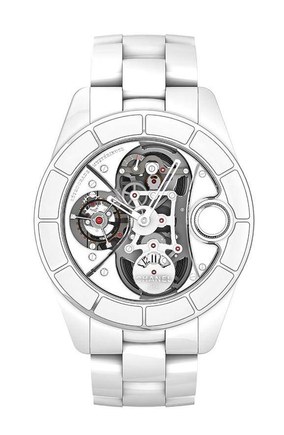 在外观上,原来表底本应该设在表壳右侧的表冠,被奇妙地移师至面盘的3时位置,令佩戴者在调时间时同样便利自若。但这种设计使得表盘上的表冠会阻挡分针的运行, 因此,分针行至10分时将以300度逆跳的方法运作,而10 20分这段时间,便由6时位置的10分钟显示窗口来实现。另外,隐藏于2点与4点的陶瓷表圈上的离合按钮,能够轻松切换腕表的手动上链与调校时间功能。制表师们的创新思想,完全在J12 Retrograde Mysterieuse腕表上得到体现。