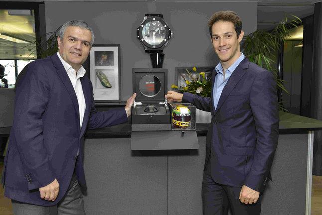HUBLOT宇舶表与包括埃尔顿•塞纳的妹妹薇薇安( Viviane Senna)在内的塞纳家族缔结的长久友谊已经进入第四篇章。今天,由宇舶表自主研发的塞纳系列中最复杂腕表在宇舶表工厂揭开面纱。来自塞纳家族的布鲁诺(Bruno Senna)——薇薇安的儿子、埃尔顿塞纳的侄子,与宇舶表全球CEO里卡多•瓜达鲁普(Ricardo Guadalupe) 出席发布会。