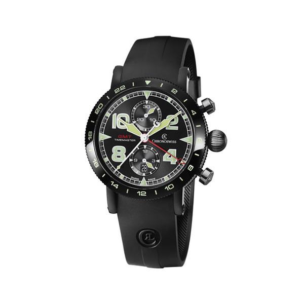 Timemaster Chronograph GMT两地时间计时码表有两款型酷黑色设计表款:首款的不锈钢表壳包围着的黑色表盘装配Super-LumiNova夜光时标及指针,第二款不锈钢表壳经极坚硬黑色类钻碳(DLC)涂层处理;两款设计的表盘布局清晰易读,表款上的GMT字样及GMT指针以鲜红色点缀,对比非常鲜明。