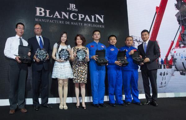 在此次的颁奖仪式上,Blancpain宝珀富有传奇色彩的五十噚系列中的“深潜器”Bathyscaphe潜水腕表及挂钟被品牌方赠予潜航员及“蛟龙号”,成为专业的制式装备。从此,Blancpain宝珀五十噚将为“蛟龙号”的每一次深海探索提供精准计时。此外,晚宴上Blancpain宝珀携手国家海洋局,正式揭晓未来几年双方在海洋公益领域的合作框架。活动当晚,斯沃琪集团中国区总裁陈素贞、Blancpain宝珀全球副总裁兼销售总监Marc Junod、Blancpain宝珀中国区副总裁廖昱,Blancpain宝珀品牌文化大使梁文道、吴晓波及品牌艺术大使冯远征,以及国家海洋局宣教中心主任盖广生、“蛟龙号”潜航员代表傅文韬、叶聪、唐嘉陵等一同出席,共襄盛举。