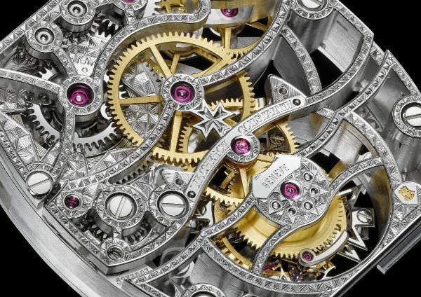 镂雕本身是一项纯粹的美学工艺,但相对于实心机芯而言,镂雕机芯的每道工序都更为复杂。首先,顶级制表师需要凭借自己的毕生经验对机芯仔细考量,既要尽可能多的对材料做镂雕处理,以展现优美的机芯内部,又要保证机芯正常运转,达到这两者间的巧妙平衡实非易事。构思、设计、制模阶段就需要耗费数百个小时,而且机芯越复杂,拥有的复杂功能越多,耗费的时间也就越长。之后工艺大师将花费几十个小时钻孔和切割所有的主板、桥板、发条盒及其他机械部件,然后手工装饰每个零件,再进行雕刻。而机芯会多次重返工作台进行修整完善,直到玲珑剔透的镂雕机芯能够完全施展出自身的魅力魔法。