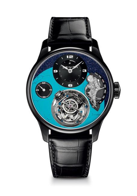 这款全新时计的名称同时包含15世纪的新大陆首位发现者和21世纪首位突破音速的探险家的名字。不仅如此,为了使计时更加精准,这款腕表还搭载一枚涵盖两大钟表创举的机芯:其中一项创举为高振频调校机械(每小时振频36,000次),可测量至十分之一秒的精准度计时;另一项创举则是已获专利的重力控制陀螺仪模件,这个精妙的机械机制可以消除重力对腕表运行造成的影响。此系统由ZENITH的工匠大师悉心研发,从航海罗盘这种制表厂过去曾大量生产的精准测量工具中汲取灵威。罗盘搭载悬挂装置,不论船只如何颠簸,总是保持水平位置。重力控制模件借鉴这个理念,并缩小其造型,不论手腕如何摆动,擒纵机构仍可保持水平位置。这模件可使摆轮重获最佳振幅,并由此消除地球重力对腕表运行造成的影响,确保精准计时。制表厂一展勇敢创新的精神,需时五年以克服这个难题,并用这项钟表创举向Felix Baumgartner及其创下的非凡成就致以崇高敬意。目前,ZENITH是唯一一家掌握这项技术的制表厂,品牌也因此夺得2011年日内瓦钟表大奖的最佳复杂功能腕表大奖。这枚超凡精准的机芯被巧妙装载于45毫米的铂金表壳内,并覆以DLC (Diamond-Like Carbon)涂层。DLC涂层不仅赋予表壳美妙的黑色哑光光泽,更强化了材料硬度和抗磨性。 此外,腕表还配备一个丝网印刷精钢板牌,其上缀以菲利克斯.鲍加特纳(Felix Baumgartner) 的亲笔签名。