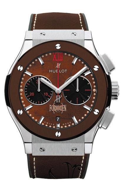 Classic Fusion 「ForbiddenX」系列腕表充分展现HUBLOT的核心价值——Art of Fusion融合的艺术,其表盘材质融入真实的烟叶,亦即用来制做著名ForbiddenX雪茄的烟叶。这些烟叶从圣多明哥的Fuente据点运往瑞士的宇舶表工厂,然后由工匠们镶嵌进表盘中,并以环氧树脂稳定强化。Classic Fusion 「ForbiddenX」系列腕表被放置于木制的雪茄盒中展出,这些雪茄盒也是由宇舶表特别设计制作,用于调节雪茄湿度,保证完美存储环境 。