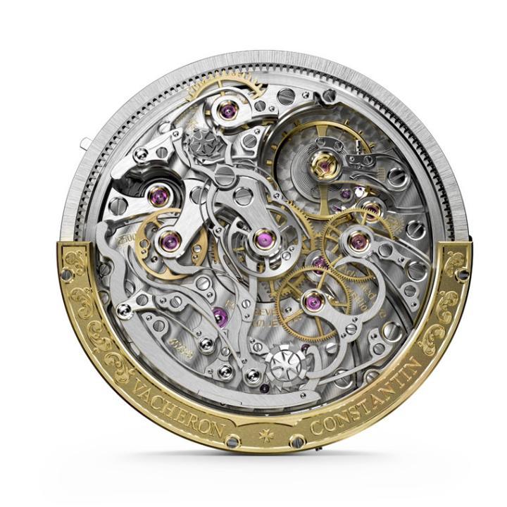 3500机芯的研发工作始于2008年,旨在传承计时码表的经典构造,同时运用最新技术保证可靠性、可操作性并完美呈现机芯的美学特质。这款机芯采用了江诗丹顿研发团队的多项先进技术,如横向耦合式离合装置的「摩擦」技术,可以保证计时功能被激活时,计时秒针不会像计时腕表常出现轻微震动。另一项重大突破是发条上满后摆陀转轮将停止摆动,从而避免上链弹簧过度施压。锥形齿轮的设计则有助于改善齿轮的啮合,从而使佩戴者感觉上链更加顺畅平稳。此外,微型技术在齿轮切割中的应用有助于实现极高的轮齿啮合度,改善齿轮的传动系统。超薄的非球形差动齿轮用于显示动力储存情况,但却不会增加机芯厚度。计时器采用“拖曳式”分钟显示则减少了振幅损失,从而提高精准性。
