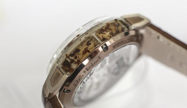 两年多来,HYT及其合作伙伴一直在努力研究,希望创造出一种材质,这材质能融合由腕表未来主人翁所选择的另一物料。「真正的挑战是开发一种合金,其化学结构可以容许我们添加其他固体、外来元素与之混合,而不影响任何其本身的可靠性或技术性能,例如硬度、密度或光泽」,HYT的行政总裁Vincent Perriard 解释道。「以我们对液体技术方面的知识,与最佳伙伴合作,再加上少许大胆无畏的精神-也可说是一点精神失常-使我们能够实现这个目标!」因此在一定的技术条件下,表主可以融合实体物质的形式,透过他们腕上的HYT把他们自己的个人宇宙展示出来。你是雪茄爱好者?那么你可以把你个人收藏中最喜爱的Rodolfo Vitola雪茄烟叶加到H1的表壳当中。你想把那小岛的沙滩无时无刻带在身边? HYT已经成功地把加勒比海上法属小岛屿Saint Barth的沙注入H1 SAND BARTH的表壳了!