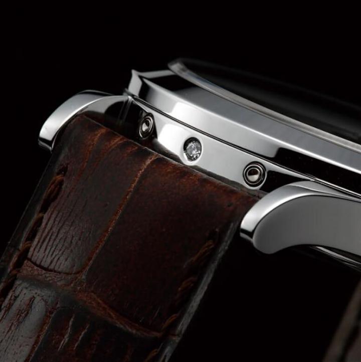 自1932 年第一款 Ref. 96上市以来,Calatrava 便以简单美感著称,圆形的表壳和流畅的表耳线条优雅相接,构成整体圆润的外形,经典之姿备受推崇。Ref. 5496P-014沿用铂金Calatrava表壳,位于表壳下方、两个表耳中间的位置低调镶了一颗明亮钻石,也是百达翡丽铂金表款的品牌特征,在手腕转动间绽放低调的奢华光芒,为经典倾注专属华贵气息。而且,相比原款表款,5496P-014扩大了表圈的宽度,表径增至39.5mm更添份量,若由正面看去,表盘的范围看似缩小一般。