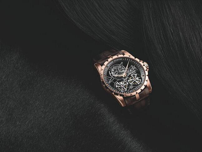 Roger Dubuis 罗杰杜彼的镂空并非简单的雕刻样式, 而是融合了包括建筑、雕塑、绘画、影像、时尚设计等 等艺术创意在内的美学创造。将层层叠叠的机芯视作群楼,在呈现秩序性的同时表 现通透感,在有光穿过的情况下,光线可以通过复杂而密集的机械世界而到达深邃的彼 岸。要达到这一效果,需要结构力学的精巧组合,Roger Dubuis 罗杰杜彼不仅做到了 镂空结构的立体与层次,同时采用五角星的镂空造型,使整体结构更加稳定,并且更具美感。