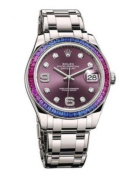 这款精致的珠宝腕表装配新款3235型机芯以及华丽夺目的外圈,外圈镶嵌48颗渐变色调的方形切割蓝宝石──18 ct白色黄金款式由蓝色渐变为紫红色,18 ct黄金款式则由蓝色渐变为绿色,或橙色渐变为黄色。亮粉、亮绿及亮橙蓝宝石表款均备有彩色表盘配镶钻的6和9数字,或密镶表盘配镶钻表带。