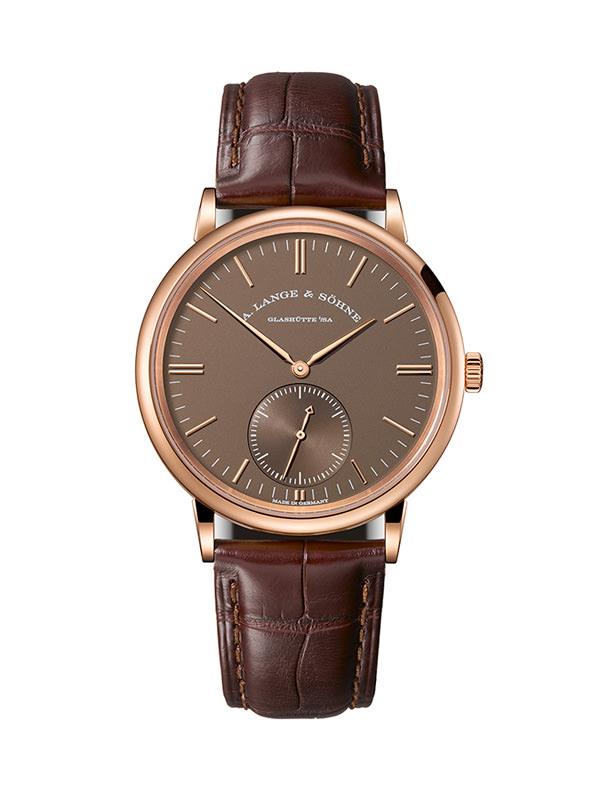 完美配搭:以18K玫瑰金和白色18K金制成的 Saxonia Autimatic,配备灰褐色实心银表盘
