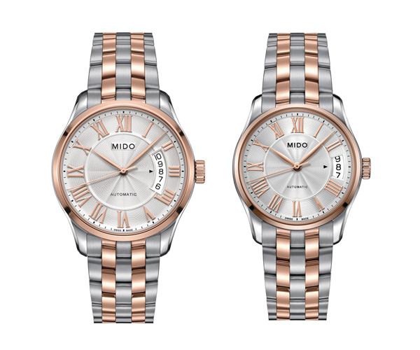 美度布鲁纳II系列全自动机械机芯长动能存储PVD玫瑰金间金款情侣对表,采用Caliber 80全自动机械机芯具有长达80小时的长动能储存,给绵绵的爱更坚定的深情。丝光打磨316L不锈钢镀玫瑰金表壳,由3部分组成,双面防眩目蓝宝石镜面;蓝宝石透明背底可观测精雕细刻的机芯,镌刻序列号,防水深度50米。女款直径33mm,男款直径40 mm。