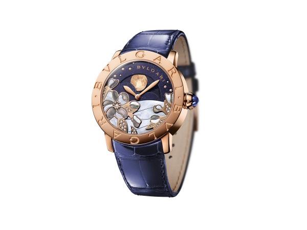 宝格丽从缤纷的自然世界中获得无穷无尽的灵感,设计出形状独特、色彩瑰丽和构造精致的作品。在这款钻石、珍珠母贝、珐琅制成的高级珠宝腕表上,花朵与月光交相辉映的图案在深邃夜空中栩栩如生。