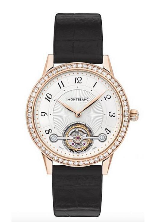 万宝龙自制机芯自动上链MB M29.24 / 快速停秒装置和微型摆陀的专利外置陀飞轮 /18K玫瑰金、58颗顶级Wesselton钻石(约1.39克拉) / 时、分显示 /表径38mm、厚9.37mm / 动储约48小时 / 防水约30米