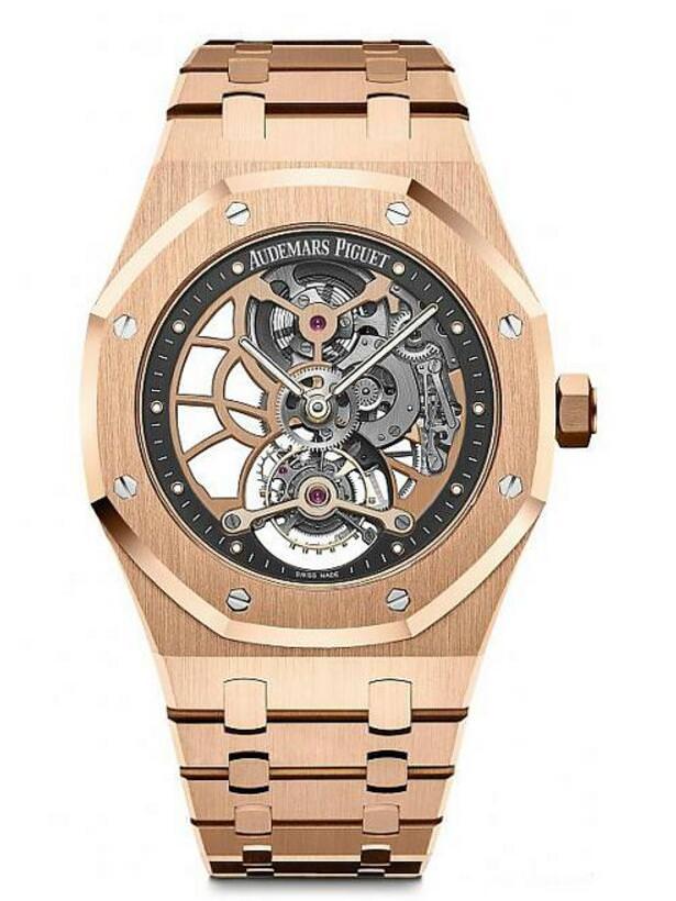 爱彼 AUDEMARS PIGUET 的原创皇家橡树超薄陀飞轮于2012年面世,可以说是为皇家橡树系列诞生40週年划下历史性标志。 这款超薄陀飞轮最初仅发行铂金款,随后则于2016年推出黄金款。来到2017年,爱彼再度推出全新限量版皇家橡树超薄陀飞轮,一款为18K玫瑰金拉丝腕表,搭配同材质链带,另一款则为不锈钢版。