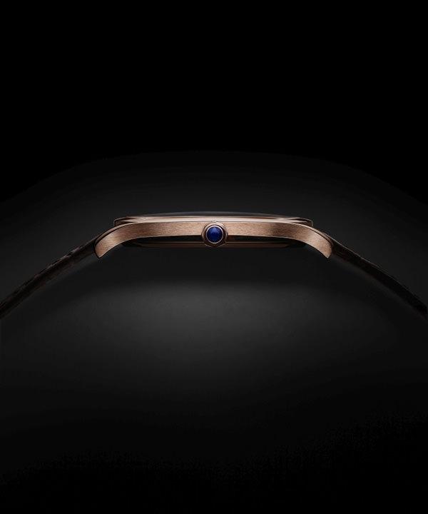 这款全新腕表造型纤薄,尽显成熟而低调的优雅魅力,是搭配正式礼服的绝佳选择。 其厚度不到7毫米,比起系列的原作缩减了40%,令设计变得非常简约。 磨砂阳光射线纹饰表盘,平面蓝宝石水晶表镜,精致鳄鱼皮表带...... 每一处细节无不为枕形表壳更添优雅气质。 这款时计造型超薄、尺寸小巧,为男士晚装腕表带来全新佩戴风格。