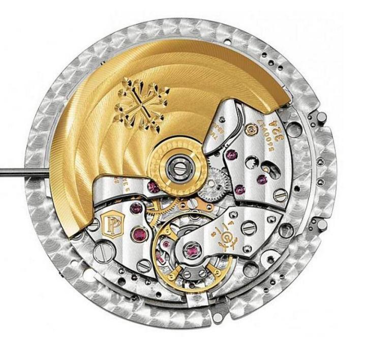 第二项革新成果关乎以传统生产方法製造的钢制零件。百达翡丽先进研究项目的工程师为了要探知机械创造性的极限,他们把目光转至「顺应装置」之上。那是由Henein教授启迪的新研究领域,装置的原理在于利用物料的弹性取代由枢轴和板簧构成的机械连接组合。这种模式在多种讲求极度精确的应用途径上已证实可用,尤其用于供太空研究使用的望远镜中。研究员为了评估装置是否适合并可以在钟表上使用,他们尝试将该概念融入324 S C FUS 机芯的时区设定装置之中。时区设定装置是相当複杂的运动构造 (关乎两个运动组合的互动,以及脱离按把的运作),这涉及钟表学中常用于控制一系列力量的功能,例如槓杆和棘爪等。顺应装置的革新概念亦使百达翡丽于电脑模拟方面,累积出广泛的技术知识。