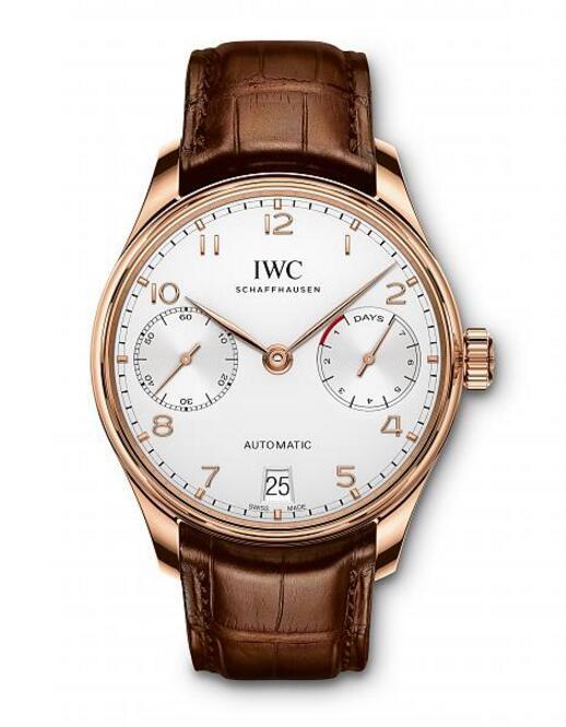 IWC万国表葡萄牙自动腕表(型号:IW500701) 18k红金表壳/直径42.3毫米/自动上链机芯/动力储存显示,日期显示/摆陀饰以18K金质徽章/防水3巴/参考价162,000人民币