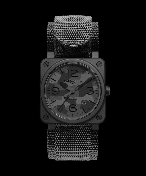 新款BR03-92 Black Camo是最新加入Bell & Ross柏莱士伪装腕表成功系列的成员。 品牌为该腕表系列开发了原创军用三色涂层。 表盘饰以哑光灰色拼接设计,而表壳和表带为哑光黑色。 高科技的应用使该款腕 表几乎无法被侦测到,尤其在夜间表现更为出色。 此外,其哑光颜色设计还可避免反射,降低风险。 这意味着,腕表可在跟踪任务中或在敌对地形下作 战时佩戴,而不存在遭到侦测的风险。 BR03-92 Black Camo保留了品牌所有的技术特性。 特别是,指针、时标和数字配荧光涂层,无论白天和黑 夜,均可确保清楚易读。 在任务期间,精英部队必须能够轻松准确地掌握时间。