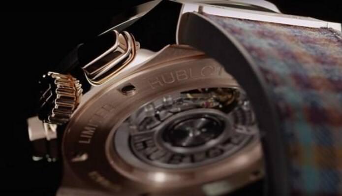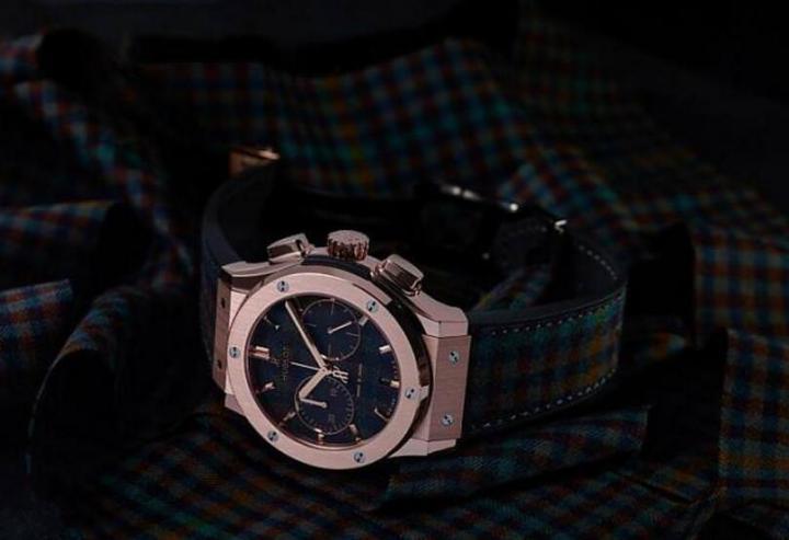 来自意大利著名西服订制大师Rubinacci,以拥有最为华美的织物典藏闻名,是时尚界无人不晓且正装的代表品牌之一,其中超过60,000平方米的千鸟格纹、粗花呢及其他珍贵面料在此次的跨界合作中得以融合在HUBLOT的计时码表中,在45毫米的腕表展现无与伦比的雅緻格调。充满七○年代经典色彩的羊毛苏格兰格纹、千岛格纹、威尔斯格纹从面盘一路延伸至表带,既不夸张亦不平淡的展现经典彩色羊毛面料的魅力。