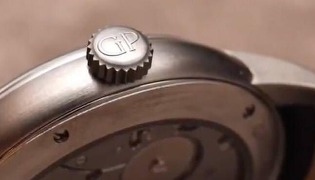 表款搭载的GP08400颇有意思,单看表背会因为遍寻不找自动盘而疑惑技术资料是否有误,但其实仔细端详腕表正面会发现在发条盒水平线上的左侧多了一枚小转盘,没错它正是机芯採用的微型自动盘,与发条盒工整对称的排列,风头完全不下金桥,甚至也是另一吸引人的亮点。