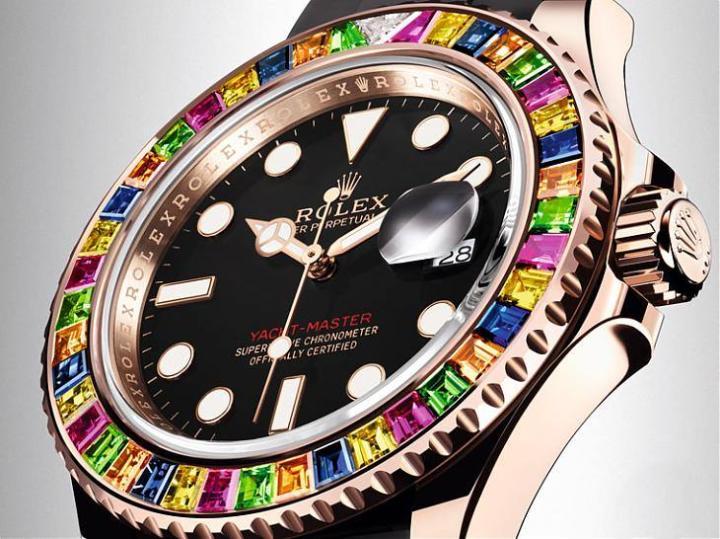 Rolex 劳力士 Yacht-Master近年的小修小改动作不断,例如2015年首度导入了Oysterflex橡胶表带、2016年则是有半金搭配巧克力色面盘的新尝试,来到2017年该款表还在进化中,此次劳力士引进了宝石镶嵌的元素——先前在品牌旗下不同系列中例如Daytona或是GMT-Master II等等都曾推出过于表圈镶上宝石的设计,但是有点出人意料的,这在Yacht-Master系列中还是一个未知领域,因此’17年品牌别开生面推出表圈镶嵌彩宝的新作,一登场就以抢眼的外型引起市场目光。