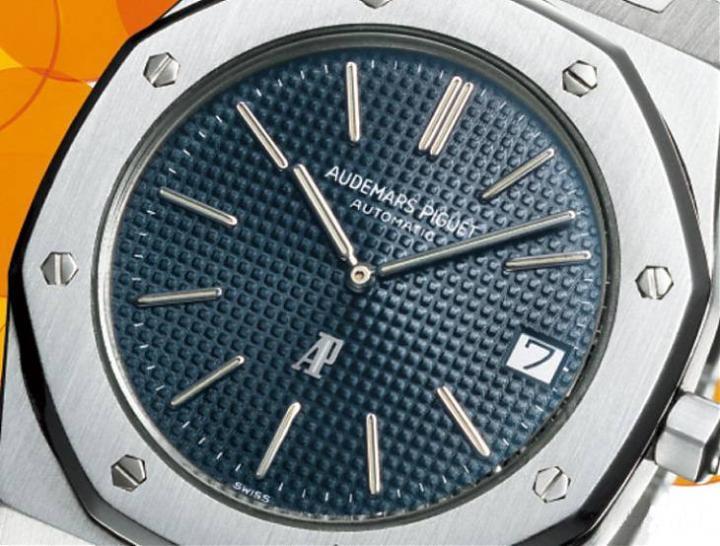 这只半金款与原始皇家橡树腕表在外观上非常接近,甚至容易被误认为同款腕表。其面盘上设有指针与日期显示,干净俐落,面盘上镌刻"Grande Tapisserie"大型格纹装饰。此装饰是爱彼独家工艺,由品牌内部独门机器在切出方块时同时压印出网状格纹,为该系列独有标志。这自1972年即成为经典的原创元素,与八枚螺丝固定的八角表圈同样是新作必然继承的特征。
