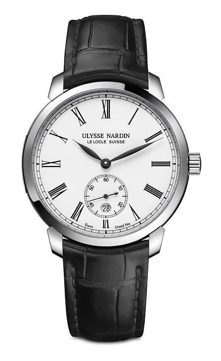 不锈钢材质/UN-320自动上链机芯/时、分、小秒、日期显示/大明火珐琅面盘/蓝宝石水晶镜面、透明底盖/防水30米/表径40mm/参考价:62,000 RMB
