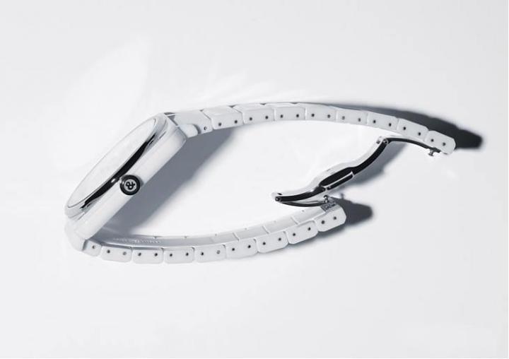 陶瓷材质/石英机芯/时、分显示/面盘镶钻7颗/蓝宝石水晶镜面/表径39x39mm/参考价:27,000 RMB