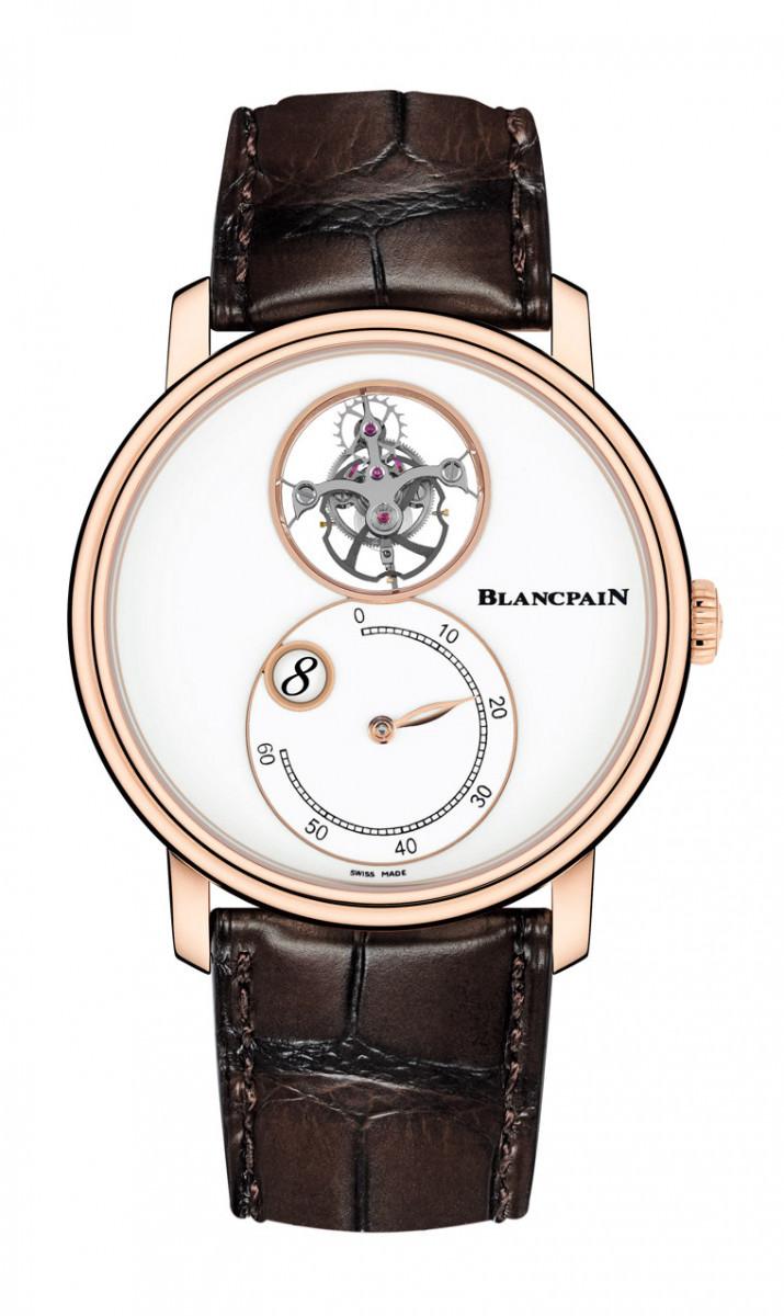 近二、三年来 BLANCPAIN 宝珀或许是因应市场环境的关系,品牌推出的新作主要以实用功能、入手价位更亲切的不锈钢壳款式以及装饰工艺表款为主,相对来说对于复杂工艺的着墨较少,不过2018年这样的情况有了改变,因为宝珀的新品Villeret飞行陀飞轮跳时逆跳分钟腕表同时集结了多种功能,既有品牌擅长的复杂工艺,也有新鲜的功能组合,而且整体造型有一种化繁为简的味道,焕然一新的面貌让人感觉到宝珀想要一吐前几年的闷气。