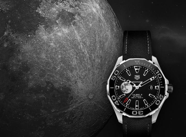TAG HEUER与中国探月工程计画合作推出两款腕表,分别为图中的Aquaracer Calibre 5和Carrera Heuer 01腕表