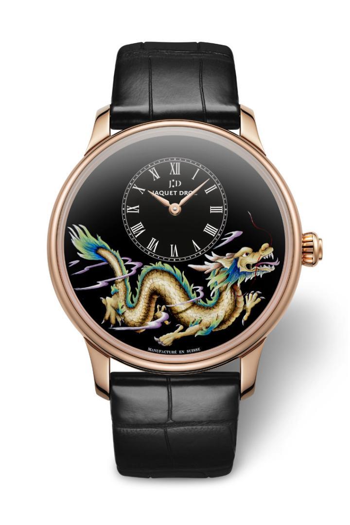 龙是呼风唤雨、权力的象征,在中国传统神话中,龙在天则腾云驾雾、下海则追波逐浪、在人间则呼风唤雨无比神通,过去也是皇权的代名词。雅克德罗早在18世纪清朝乾隆时期就与中国结下不解之缘。他对中国文化的热爱,也可以从他的作品窥知一二。传承皮埃尔.雅克德罗(Pierre Jaquet-Droz)的制表理念,将中国传统民间故事与工匠大师的精湛技艺完美结合,创造出独具一格的腕表,同时书写雅克德罗全新历史篇章。
