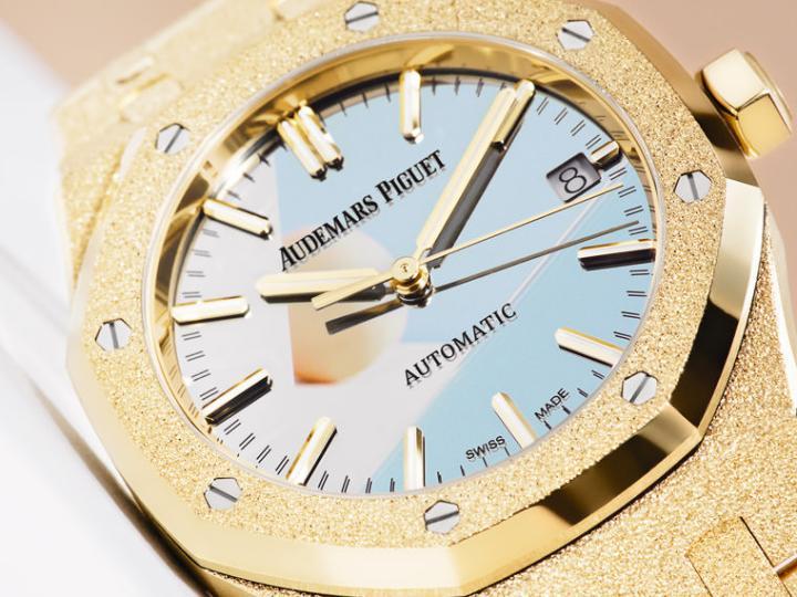 Carolina Bucci于2016年为品牌设计首款霜金腕表以庆祝皇家橡树系列女表面世40年。本次推出全新腕表限量300只,崭新设计可见一斑。首次于黄金材质上缔造钻石粉尘效果,并成为Carolina Bucci最爱款式。她更为该腕表设计全新表盒。镜面盒子上镶嵌了霜金AP字样,让盒子本身成为装饰摆设。