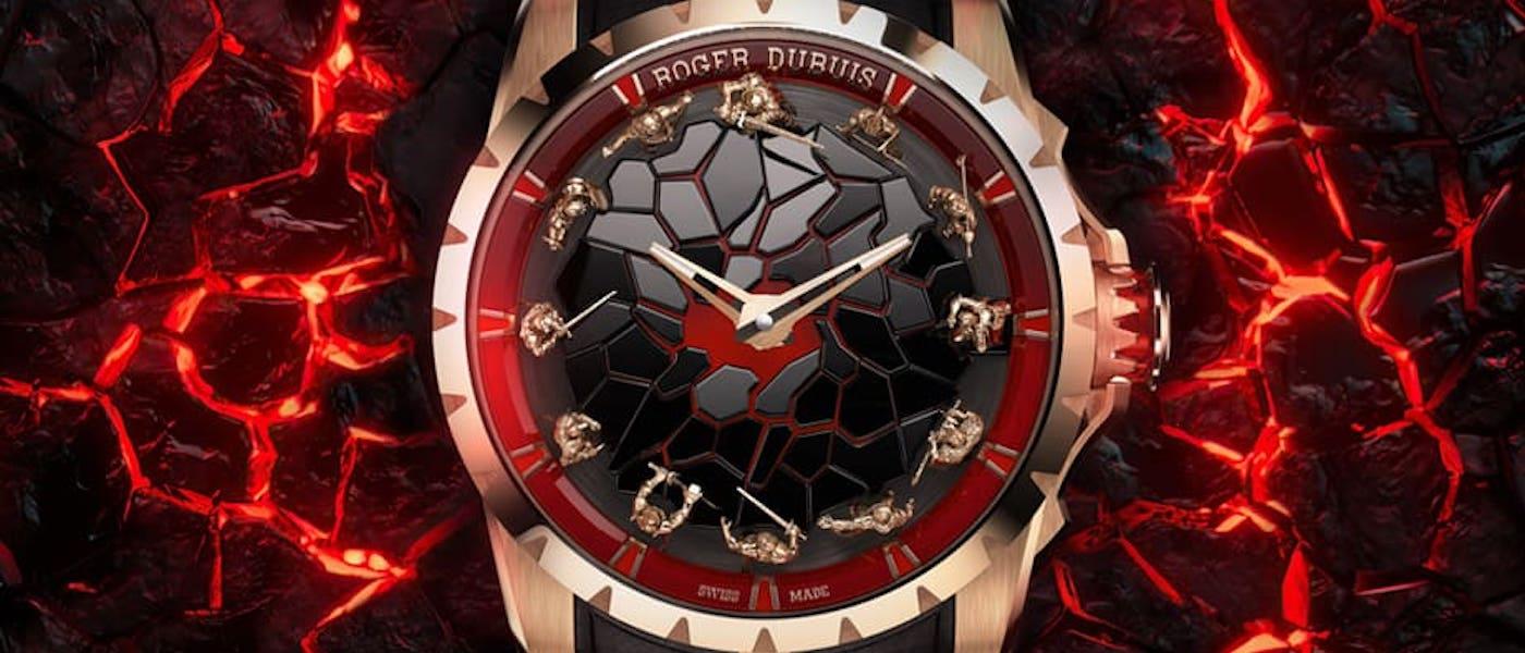 新款王者系列圆桌骑士超级手表还有个亮点在于罗杰杜彼采用威尼斯传统工艺的慕拉诺玻璃打造,并且还是手工拼接而成,黑色的慕拉诺玻璃高底起伏排列在红色背景上,看起来仿佛圆桌骑士的坚毅决心撼动了大地,让人强烈感受到传说中骑士精神的勇武风范。